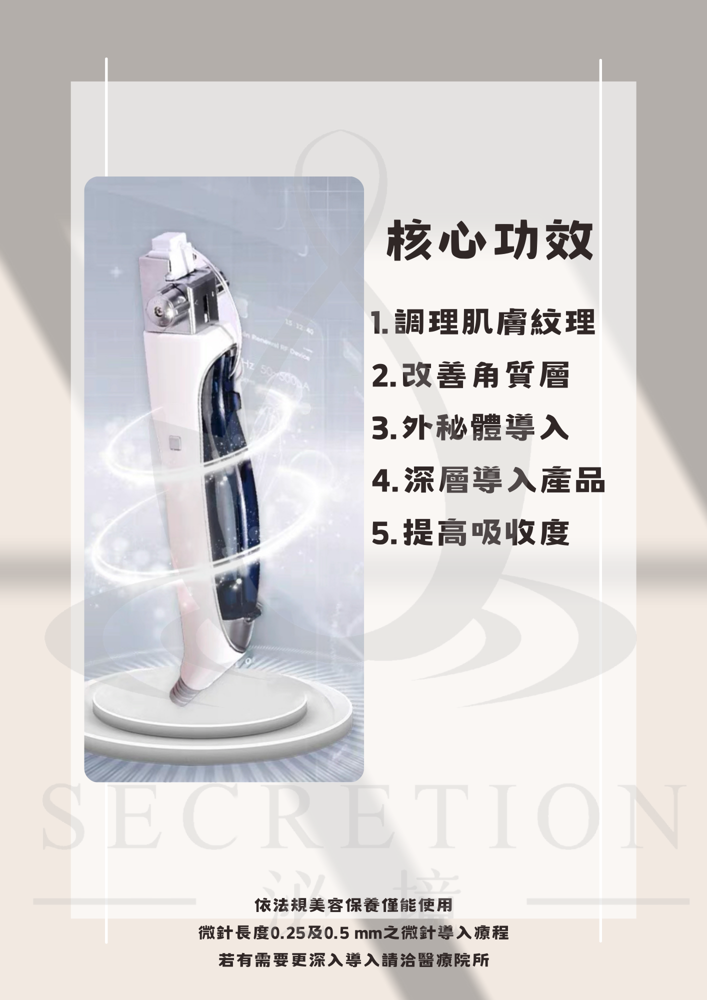 泌境美療課程 [肌膚]水飛梭氣泡 粉刺清潔課程 [肌膚]高壓水光 導入課程 [肌膚]EMS奈晶無針水光導入課程 [肌膚]MTS微針水光導入課程 [肌膚]加值附加課程 蘊髮導入課程 日本off&relax 洗頭/護髮